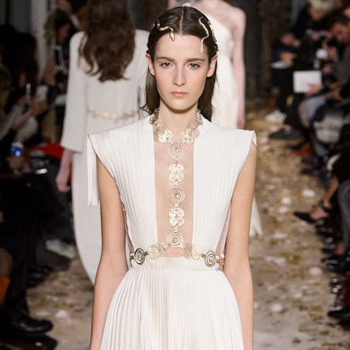 Whether you’re recently engaged, hoping a proposal is on the horizon (ahem, Valentine’s Day) or simply love gushing over wedding dresses, the Spring 2016 Couture runways are a bridal gold mine. Use these breathtaking looks to cop styling tricks (see Valentino’s body jewelry) and subtle color choices (like Ulyana Sergeenko’s pale violet) for your own dream ensemble. After all, couture is high art, and nothing less will do for your big day.