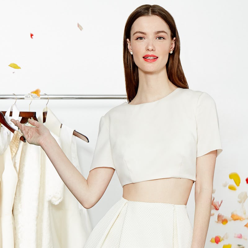 Since crop tops continue to have a serious moment in the fashion spotlight, we were not surprised to see the daring look pop up at Bridal Fashion Week. If your nighttime uniform tends to include more sexy separates than traditional dresses, why not consider the look for your own big day? Flip through for a recap of how designers are experimenting with midriff-baring gowns right now.