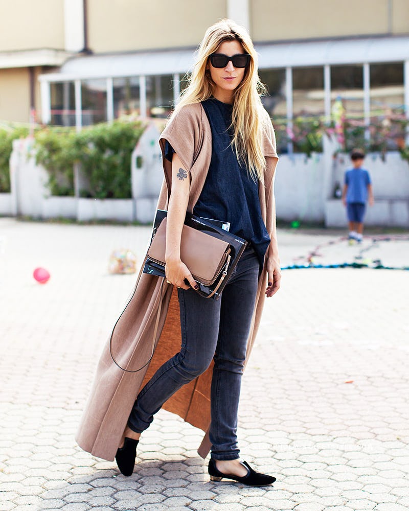 Saturdays and Sundays are for boozy brunches, bestie catch-ups and outdoor romps, the last thing you want to concern yourself with is wardrobe selection. Keeping this stellar street style look as your reference, try elevating a humdrum jeans-and-tee combo with a sleeveless waistcoat — clean lines and a neutral color palette keep things polished for whatever the weekend may bring. Best part: come Monday morning, get office-ready in a snap by swapping the denim and flats for a pencil skirt and pumps.