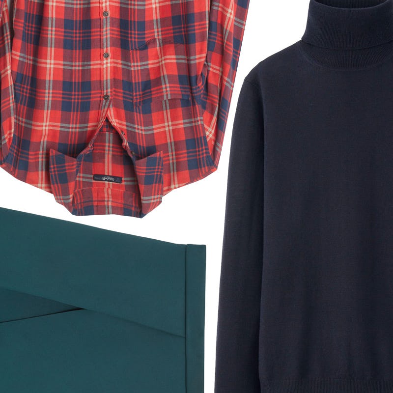 This look conjurs images of hikes in the English countryside (Prince William not included). Layer your turtleneck under a bright flannel (leaving the top few buttons undone), and throw on a pair of casual skinny jeans. Top with a plush coat and flat Chelsea boots.