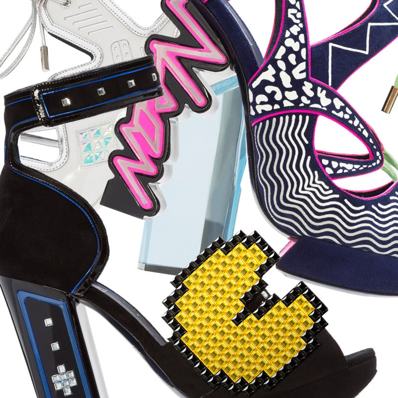 Nicholas Kirkwood celebrated the 10th anniversary of his namesake footwear line with a quirky collection inspired by pop culture. With a reputation for defying the norm by creating shoes with an unexpectedly quirky, artful flair, it isn’t surprising that his most recent collection left us awestruck. “10”, which even has its own website to commemorate a decade of cult-favorite designs, pays homage to popular video games, toys and films of the ’80s (think Pac-Man, Star Wars and Back to the Future) with a 10-piece capsule of graphic, statement heels. Whether or not you’re in the market for an eye-catching pair of shoes, these limited edition, made-to-order styles are so insane you have to at least sneak a quick peek on your lunch break. And if you do decide to splurge, pair your pick with a monochromatic outfit and modern, minimal jewelry for your next GNO. Game on!