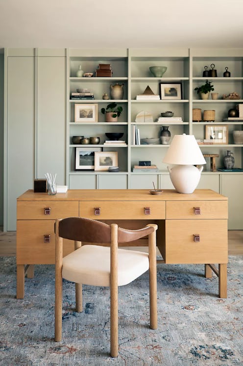 Thus, the fall 2021 collection was born with that in mind. But while you’re probably expecting lots of comfortable fabrics and cozy colors, you’ll also see some pieces that are strategically made for the demands of our “new normal” — namely, home office furniture, which Domino reports is the designer’s first venture into the space. That includes the Sunfair Executive Desk for $1,798, which pairs perfectly with storage such as the Henderson Bookshelf for $2,298.