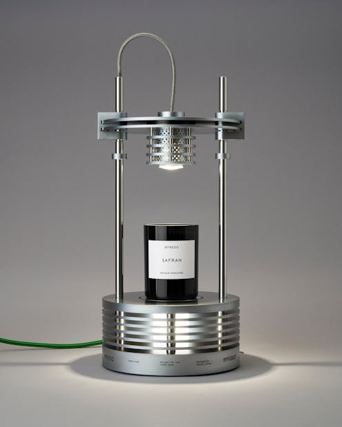 But it’s not just the experience it creates that makes Infra Luna worth your attention. The design was made in Lalloz’s signature industrial aesthetic, and appears almost otherworldly thanks to its circular steel frame, LED lighting, and pop of green from the cord. So even without one of Byredo’s chic candles in it, it’ll look interesting sitting in your home.