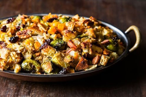 Butternut Squash, Brussels Sprout, and Bread Stuffing with Apples by Gena Hamshaw