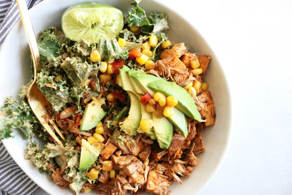 We love a burrito bowl as much as the next girl, and this vegan version is out of this world. Drizzle on her Vegan Queso to turn your next sad desk lunch into something truly magical.