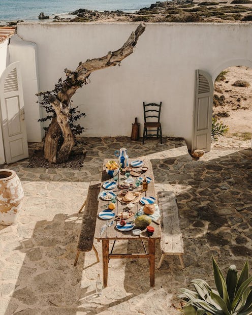 But if this wasn’t on your radar before? Soon, it’s going to be impossible to miss (that is, if it isn’t already). H&M Home’s entire summer collection, launched earlier this year, was made up of blue and white, Santorini-like hues and featured laidback Mediterranean vibes. Arhaus’ outdoor collection very much followed suit. And they’re not the only ones jumping on board.