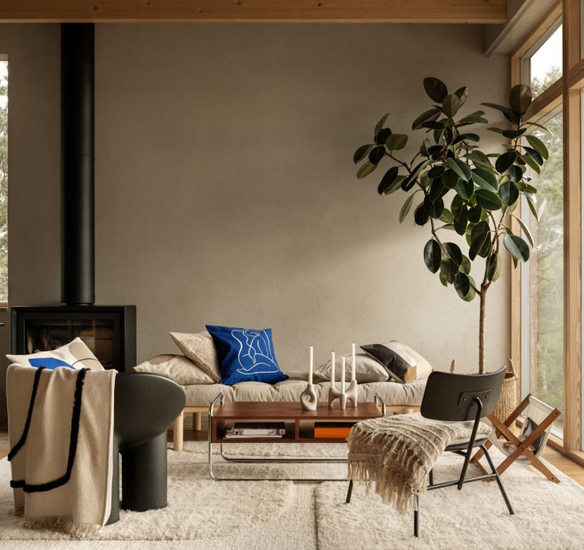 Yes, it does include a hefty helping of neutrals, so it won’t land too outside your comfort zone if you consider yourself a traditionalist. But in addition to those, the collection features a splash of “Klein blue” (aka a deep blue hue developed by French artist Yves Klein) throughout a selection of artsy cushion covers. Meant to be mixed into the selection of sculptural, warm pieces that make up the rest of the launch, the bold blue products provide just enough of a pop to add a surprise in your decor this upcoming season.