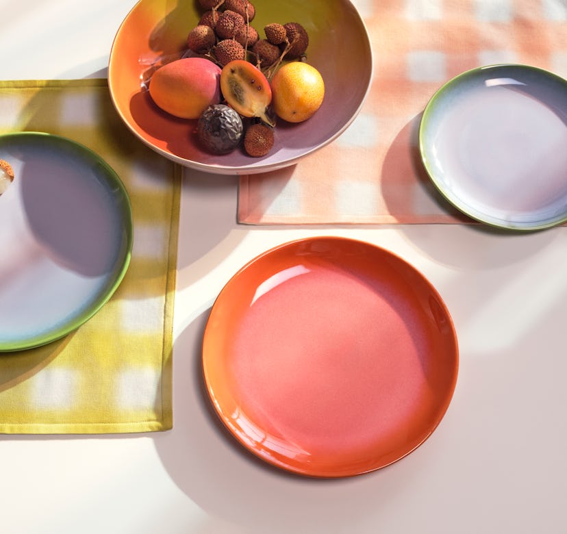 Available as of April 28 in select H&M stores and online, the line (which ranges in price from about $18 to $500) includes an edited selection of products featuring blurred lines, gradient colors, bright acids, and soft pastels. To create it, Mahdavi took inspiration from the blinding colors you see when you close your eyes in front of the sun. As with much of her work, the goal was to incite optimism through color in those who use it. “With this collection, H&M Home has offered me the opportunity to spread a joyful palette of colors on an international scale,” said Mahdavi in a press release.