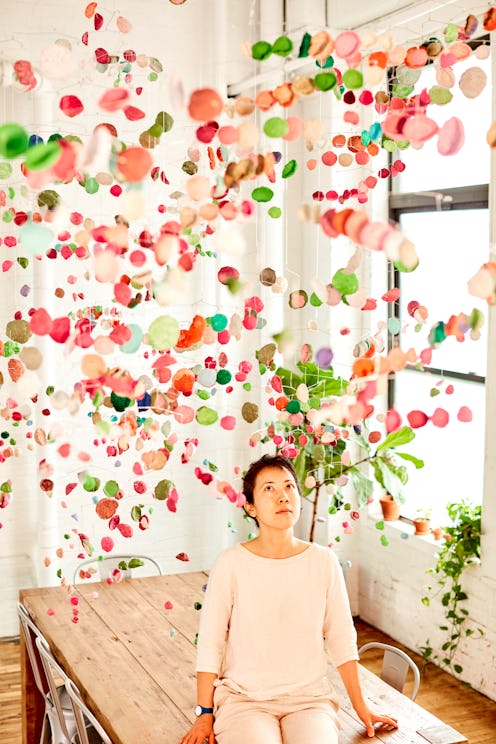 Nishikawa has a background in interior and industrial design, which she utilizes to create lamps, chandeliers, sculptures, vases, and tableware by hand in her studio. She also specializes in fantastical installations, whimsical lighting, and collectible objet d'art, and her creations for this particular collaboration reflect that specialty, thanks to their airy shapes and bright, playful colors. “Beans, Pinecones, Umbrellas is my expression of joy through mobiles whose wonky colorful dots sway and giggle as we walk and stir the air around them," Nishikawa explained in a statement of the collection.