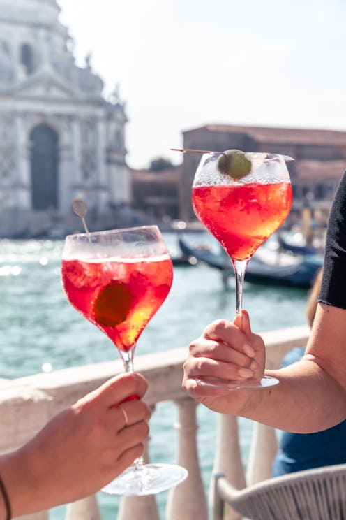 For decades thereafter, Select was used in the traditional way of bitters — on the rocks with citrus, mixed with soda water, or as an ingredient in the Americano, says Carducci. It also made appearances in original cocktails in notable cafes of Venice and various other cities. (In fact, he continues, Select was “a critical ingredient in a handful of cocktails that appeared in a famous Italian book published in 1936, called 1000 Mixtures.”) You’ll notice though, that Carducci doesn’t mention its use in a spritz. That’s because according to him, it wasn’t until about 50 years post-launch that the Select Spritz, or the Venetian Spritz, was born, using the classic recipe of Select, prosecco, and soda, garnished with one green olive.