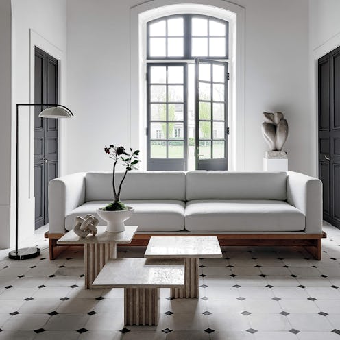 What exactly is travertine? According to Chairish, it’s “a form of limestone deposited by mineral springs” with a soft, tonal hue and a bumpy surface. In furniture and decor, it provides a certain amount of substance, yet it still manages to give each piece an understated look thanks to its color — possibly pointing to why it’s seen such an increase in popularity, given that it appeals to a variety of design preferences. And even that may be an understatement — according to Etsy’s 2021 home decor trend report, searches for travertine items were up 211%, while searches for travertine tables were up by 361% in the last three months compared to the same time the previous year.