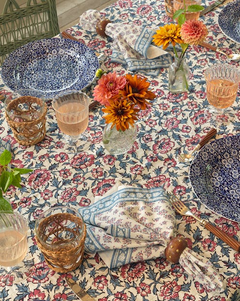 As you’d expect, with this collection the brand focused on making a few things, and making them well. The Boho Vine line only includes four products: a set of four placemats for $150, a set of four napkins for $100, tablecloths for $275 apiece, and a beach blanket for $295. Its selection of colorways is also limited — there are two for each product, including geometric floral prints in sage green and chambray blue.