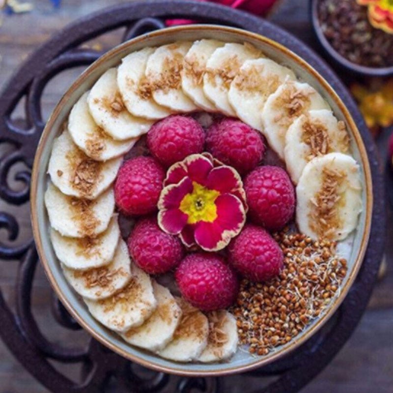 You've probably heard that chocolate is actually good for you (and not just from that little voice inside your head), and it's true, thanks to cacao. The purest form of chocolate, this superfood is a great source of antioxidants, iron and magnesium, plus it can actually calm the nervous system by increasing your serotonin. You can get all of cacao's benefits in the box's Cold Brew + Almond Smoothie, Cinnamon Protein + Banana Overnight Oats and Quinoa + Chipotle Harvest Bowl.