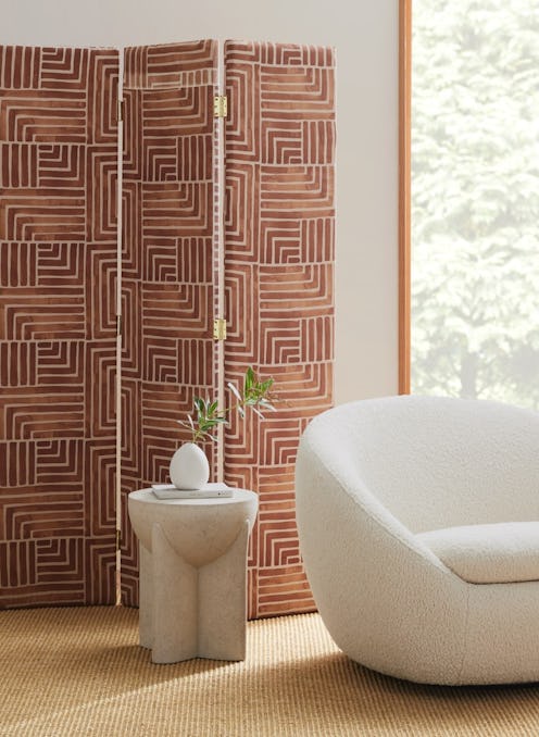 If you want to look ahead, though, start with the wealth of geometric pieces, which nod to a growing movement in decor. As TZR noted earlier this year, Chairish wrote in a recent trend report that “geometric pieces would be taking over homes in 2021.” Designer Cara Woodhouse confirmed this, explaining that she’s seen many incorporating these shapes into their spaces, albeit with a softer approach (think round edges versus hard shapes). West Elm decided to focus on both, with products such as the Pebble Geo Pillow Cover and the Array Glyphs Rug which alternate between circular shapes and rigid lines.