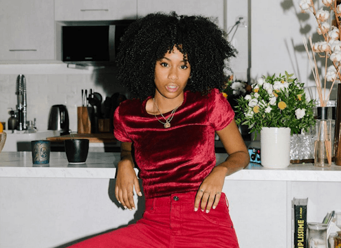 If you’re up for a little see-through action, consider a sheer top paired with your favorite Lacey bralette. Polish it off with blue jeans to keep everything feeling effortless and a petite purse for a charming finish. (The one seen here on Imani is from Maison Cleo, but it's sold out.)