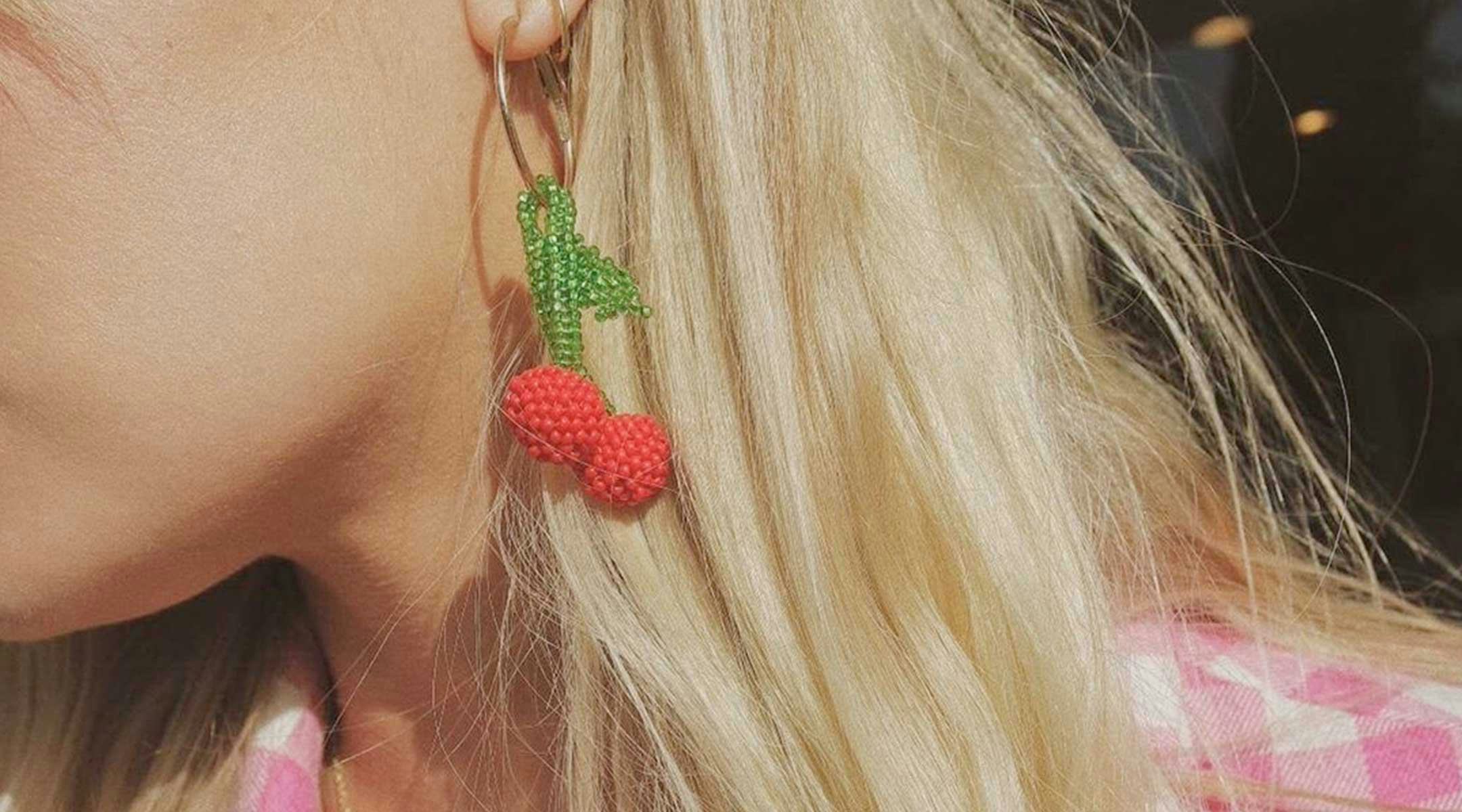 Ahead, discover ten of such aforementioned pieces that feel modern and playful. You'll find a pair of cherry-bedecked earrings that'll make you put your classic gold hoops to rest, a layering combination that's not exactly safe for work (but plenty cute anyways), and an accessory trend your grandmother would give her stamp of approval on. Now, see and shop these eccentric items to enliven your summer wardrobe all season long.