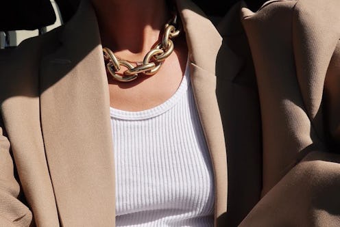 Dainty layering took a backseat this year to oversized, chunky chains — arguably the year's most viral jewelry trend. A thick, metal chain is both edgy and minimal and doesn't take much effort to throw on with jeans and a tee.