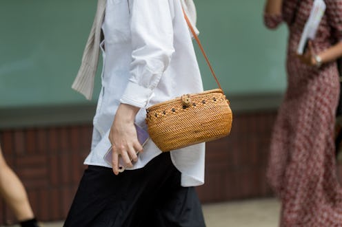 Raffia palm originates in parts of Africa and Central and South America. The sun-dried finished product wields a super tropical look, which has lent itself time and time again to tote bags, woven hats, and other beach-bound accessories. Still, when looking back into the archives, straw bags have made appearances on surprising occasions — take, for example, Alexa Chung's beach tote, which she styled with a white sundress and a black trench coat in mid-February for LFW. While the texture is known for evoking summer, it's totally primed for adding life to other parts of your wardrobe — especially those demure coats and blazers that need an extra pop.