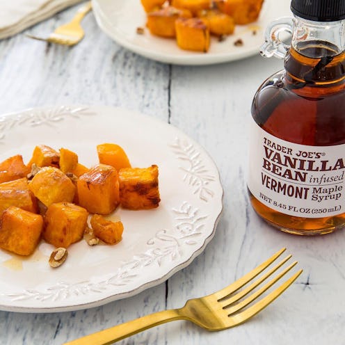Create a simple, slightly sweet side dish that will satisfy everyone's craving for seasonal flavors. Trader Joe's pre-cut butternut squash cubes get a little help from vanilla-infused maple syrup and a sprinkling of candied pecans. Follow the steps for this super-simple recipe here.