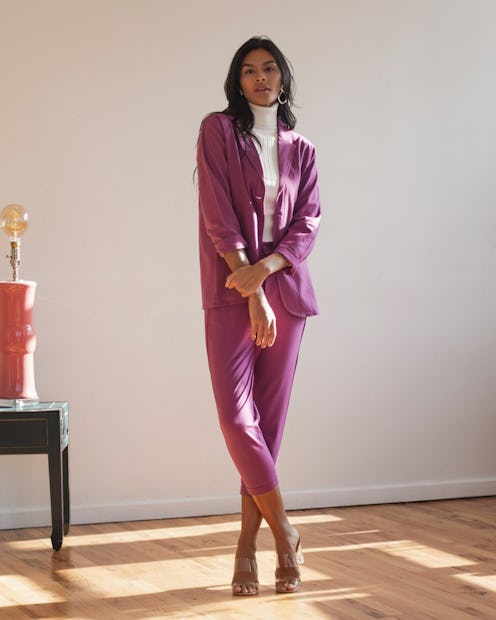 Lacausa specializes in making core pieces out of high-quality materials with trendy touches. This kiwi-colored three-piece suit set, for example, is a great option whether combined or separately.