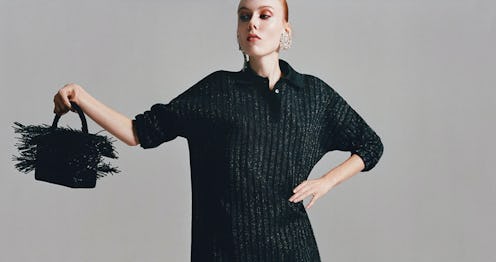 For those who want the traditional glitz of an NYE ensemble but don't care to look like a human disco ball, you can rejoice in knowing there are inexpensive options available. Dresses like this dark silver long sleeve style from Zara, $35.90, bring the sparkle and shine in a more understated way that'll still turn heads. Plus, with a pair of sleek ankle boots, it's a ridiculously chic look that'll stand out in a crowd of outfits covered in sequins.