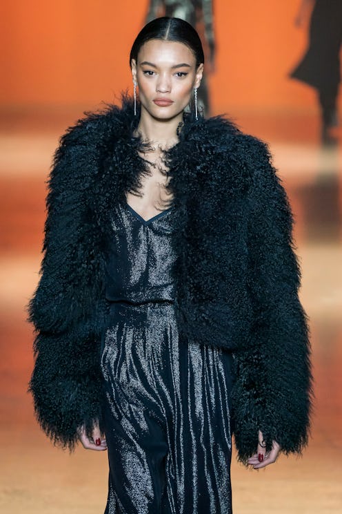 But for those more interested in a traditional ponytail, the hairstyle over at Cushnie's Fall/Winter 2019 show in Manhattan on Feb 8. more than delivered. The look was a sleek, straight, slick ponytail that hung directly down the models' backs. (It was a very Meghan Markle move, actually.) But instead of securing the style with a regular old ponytail holder, hairstylist Justine Marjan used a piece of thread to hold the hair together.