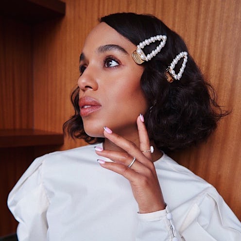 Where 2020 meets 1920. Dress up a short bob with pearl-encrusted clips á la Kerry Washington.