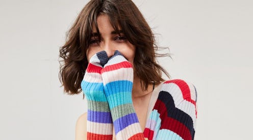 Color-inclined shoppers will gravitate toward the bold brights of a multi-striped ribbed cardigan from Autumn Cashmere for $335. Or, they'll be interested in scooping up a cropped cardi from Topshop in a poppy shade of pink, a color that'll fit right in with the rest of the bright colors having a moment.