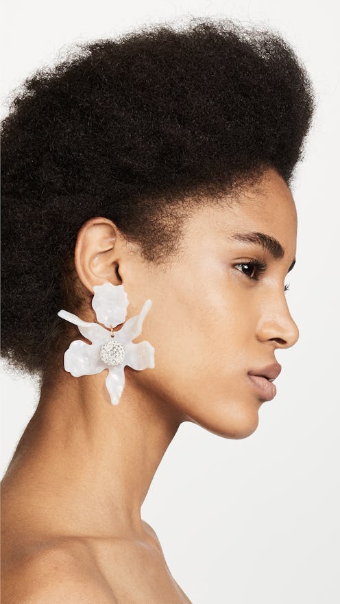 Shoppers eager to add statement-making styles into their jewelry box this season will find a wide variety of earrings to shop, from oversized studs to danglers that'll look like small bouquets swinging from your lobes. For those who live by the motto more is more, you'll find Simone Rocha's flower earrings, $450, particularly enticing. The red cascading petals will make for a fun addition to a laid-back sweater look, as well as a stunning final touch to cocktail attire. There are also equally as many neutral options that'll still make a visual impact, like these white acrylic lily earrings with sparkly pavé crystal centers from designer Lele Sadoughi.