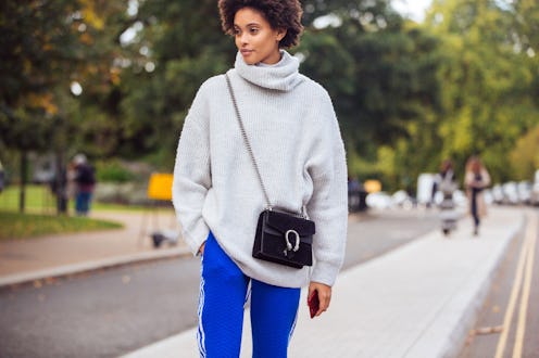 When you're after all things chic and cozy, an oversized sweater dress with a cropped hem looks nicer than sweats (while feeling pretty much identical). The lightweight acrylic knit is woven in a shaker stitch and falls to about mid-thigh — just right for a pair of Highlands if you're going out later, but it can also layer well with leather leggings when the temperature drops.