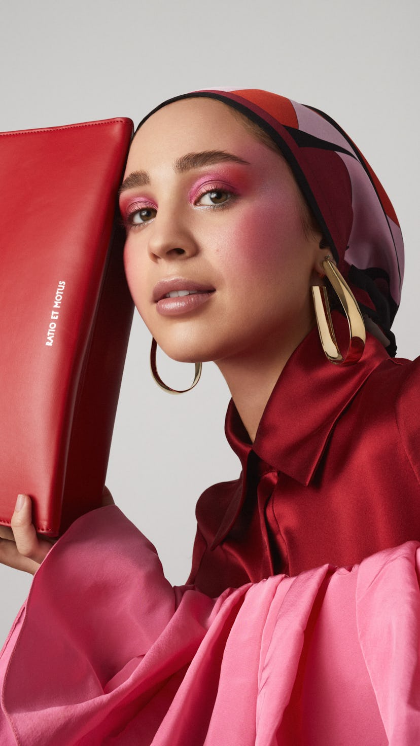 Her hijab was always an accessory that was a non-negotiable for any look. In fact, it was her own decision to wear it in high school. “Traditionally, you start wearing the headscarf when you become a woman,” she says. “I wore it on my first day of high school. To be fully honest, I don't know if I, at the time, understood the reasons behind it. I just kind of was like, ‘Yeah, this is what you do, and this is what my mom, my older sister, and my cousin wears.’ Two or three years after is when my dad actually told me and my sisters, ‘I don't want you guys to ever feel like you have to wear the hijab. If you don't want to wear it, you don't have to wear it.’ It was never forced upon us, and he wouldn’t have been disappointed. I did think about taking it off, but at that point, I enjoyed it. It was nice to be able to be identified and visible, because I’m very white-passing. Without it, nobody would even know that I was anything other than just your average white American girl. I liked that it kind of tells my story without me even speaking.” It’s also become an extension of the outfits that her followers love so much. Half the time, she says, she typically opts for neutral colors. But she’s been playing around with brighter palettes and prints, like the stunning Emilio Pucci and Fendi looks she wears in this shoot.