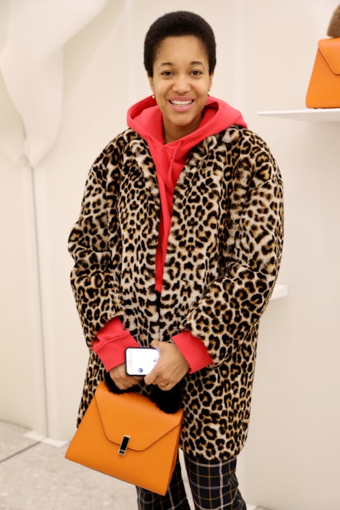 If you're celebrating Friendsgiving, impress your crew with an outfit that looks fancy, but is actually low-key. An embellished sweatshirt adorned with dainty florals or delicate pearls is one way to add polish while keeping comfort levels at a maximum. Complete the holiday-ready look by pairing a voluminous skirt with a pair of crystal bedecked sneakers, and an eye-catching bag in a brilliant shade (great for stowing away snacks for later).