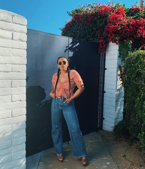 Not so long ago, Reformation's breezy linen matching sets were a festival uniform. Now, it's all about coordinating your denim look from head to toe. Look for fun prints or bright colors that you can layer when pulling together your look. And while you're by no means obligated to wear your jacket all day long, it will come in handy when things cool off post-sunset.