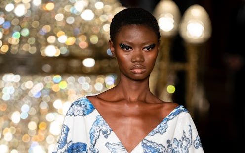 Eyeliner showed up in many ways at LFW — but never how you’d expect (see: Beckham's ode to Sedgwick). At Simone Rocha, Gucci Global Makeup Artist Thomas de Kluyver took black pencil to models’ eyes in a way that felt very "toddler-learning-to-draw" chic. (Is that a thing? I think it’s a thing). At Matty Bovan, black liner started at the middle of the lower lash line and angled inward past the inner corner of the eyes. “I love how this liner makes the eyes look so intense,” Dominic Skinner, a Global Senior Artist at MAC Cosmetics and the man behind the Matty Bovan makeup, wrote in an Instagram caption.