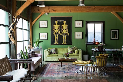 While clearly vintage-inspired, Auerbach makes sure to add a few more modernized pieces to mix things up and not look too on-the-nose. "Pair an industrial wooden table with old school chairs," she suggests as one way to balance things out. You can also look for a few sleeker pieces, like a luxe sofa, to juxtapose with some of the more distressed ones.