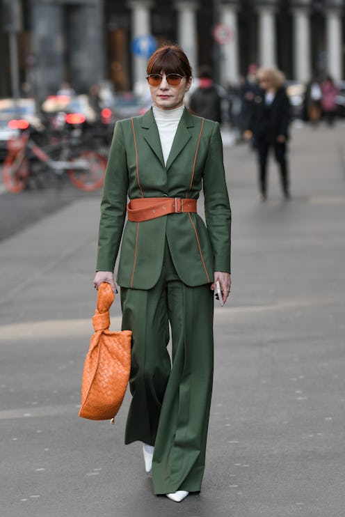 If you browsed any street style photos from Milan, you probably spotted a slew of eye-catching, vibrant suits displayed in every color of the rainbow. Tiffany Hsu opted for a fresh blue Attico set (with coordinating blue accessories), while Gala Gonzalez decided on vivid red. And spring-approved pastel suits were worn, too.