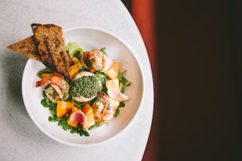 Think of an amped up version of the basic tomato and burrata salad, and you'v got this dish served at Elvie's in Jackson, Mississippi. "This salad has been a huge hit and it's super easy to recreate at home," says Chef Hunter Evans. "I cut heirloom tomatoes into large chunks, add a splash of olive oil, sherry vinegar and salt and pepper. Then, I let it sit in a bowl for five minutes. Build your salad by adding your favorite greens, grilled shrimp, and mozzarella or burrata. Add the tomatoes on top of the lettuce, drizzle with pesto, and enjoy!"