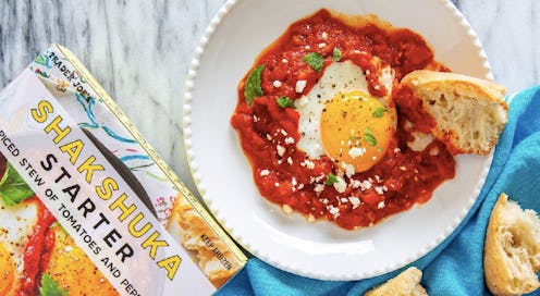 Sure, this Mediterranean/Middle Eastern dish of spiced, stewed spiced tomatoes and peppers is traditionally served breakfast, it would also make a totally satisfying dinner. This new kit has everything you need to whip this vegetarian meal in five minutes — all you need to add is a poached egg and some crusty bread for dipping.