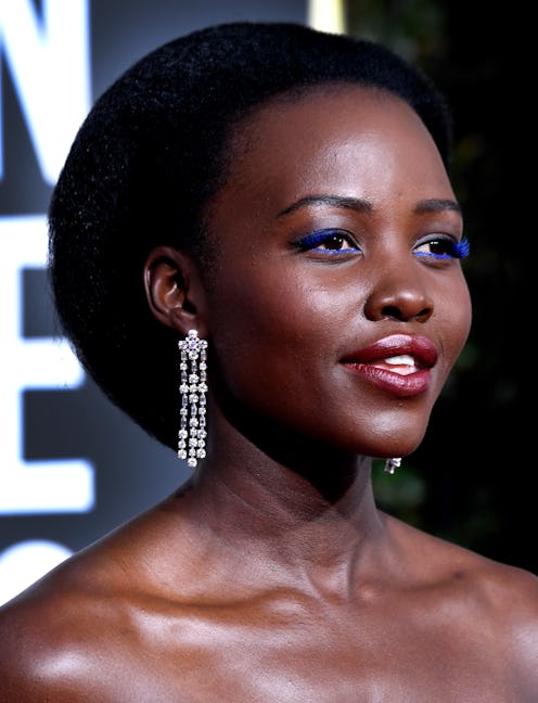 "A graphic liner with a pop of color like blue, pink and orange is going to be a big trend in 2019," says Holm, a celebrity makeup artist who is behind some of the best beauty looks seen on the Kardashians, and Lana Del Rey. "Dior’s spring collection features an eyeliner with beautiful pastels — it’s the onstage liner that comes in a marker form that makes it very easy to apply," she says. Nyong'o, above, turned to Barose for a bold, can't-stop-staring eye look at the Globes... and I'm inspired to purchase the first pair of blue lashes that I see, stat.