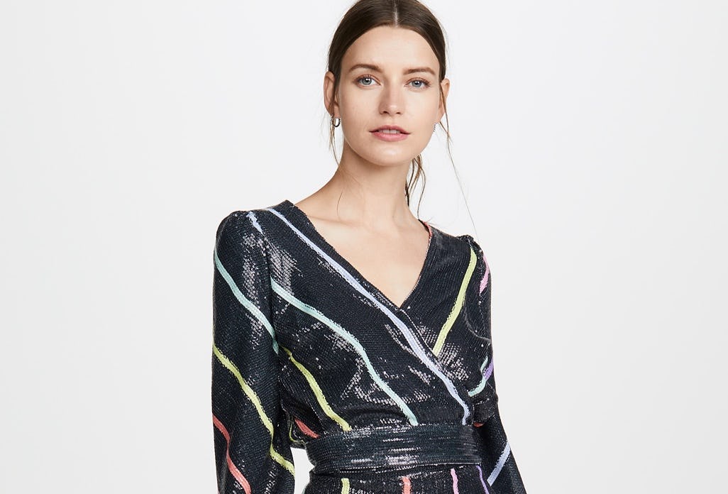 For statement styles that are ready for fun-filled days and nights, look no further than London-based designer Olivia Rubin and Brazilian brand FARM Rio. While the former looks to rainbows and a candy-inspired color palette for inspiration (just look at this pastel-hued tiered-ruffle confection, $635), the latter loves bold, bright jewel tones and lots of tropical prints. Snag FARM Rio's breezy sunflower maxi dress, $295, or voluminous-sleeved jungle floral top, $125, for weekends and snag Olivia Rubin's playful double-slit sequined skirt, $390, for date night.