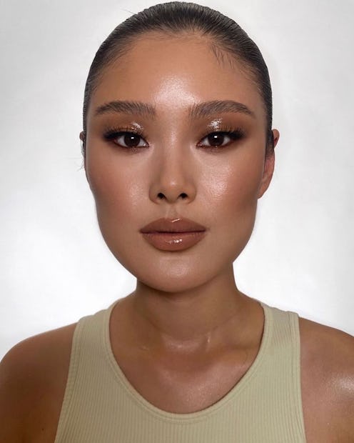 For the truly short on time — like, out the door in the next 10 minutes — speed-run your complexion routine then finish it by patting on a lid and cheek gloss. It's modern and a bit flashy, especially when paired with a lip gloss. (And who doesn't want that Patrick Ta glow?)
