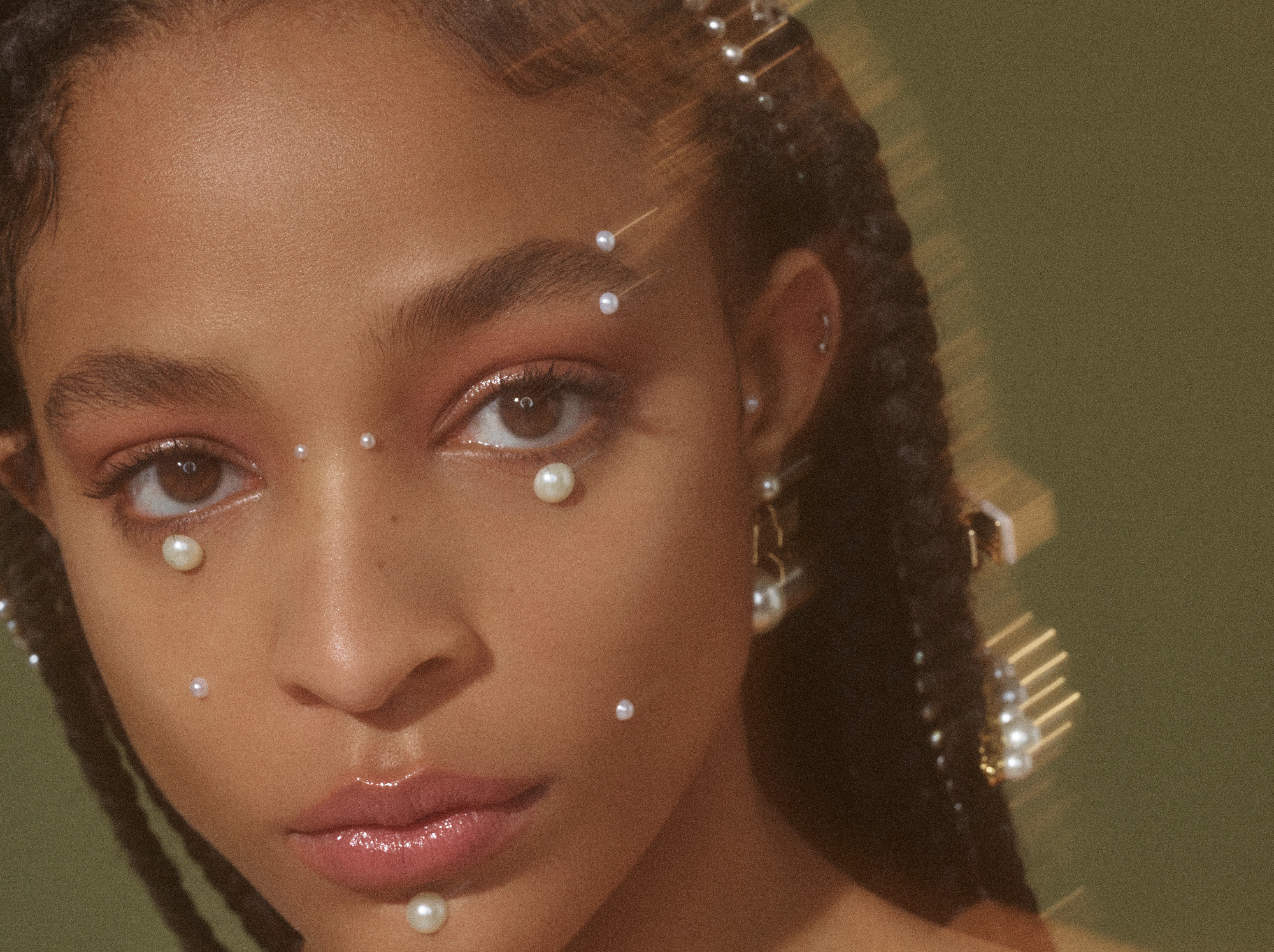 "The pearl trend does fit in with the festival trends," makeup artist Tiffany Patton, who keyed the beauty looks for TZR's first beauty shoot, tells me. "But it doesn't always have to be just for festivals. That's part of the allure of pearls... they have an otherworldly quality to them. They can be structured or futuristic." Plus, a pearlescent finish is what was all the rage during Fashion Month — soft and dewy is the name of the game, rather than a whole lot of in-your-face glitter.