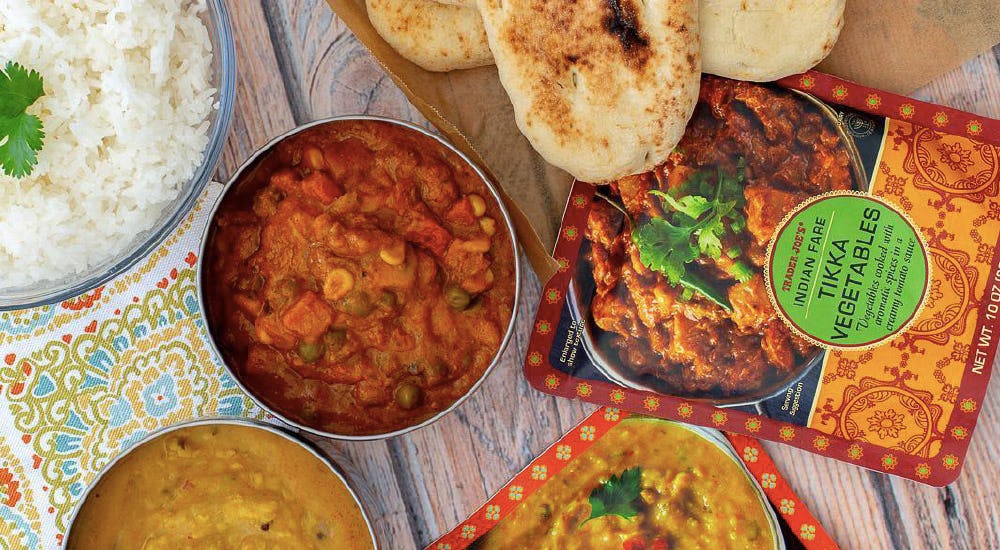 No need for takeout with TJ's ready-to-serve Tikka Vegetables and Yellow Tadka Dal. Just heat in your microwave of on the stovetop for a few minutes and serve with with naan bread and jasmine rice — both of which are regularly stocked in the grocer's freezer section.