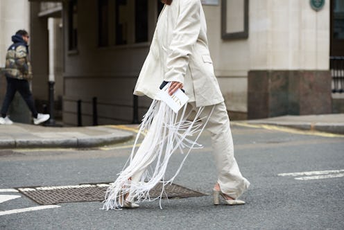 Suits made a statement this season, especially on the streets. During fashion month, attendees were seen flocking in and out of shows in various iterations of the pantsuit. The great thing about a versatile matching set is that each piece can be worn together or separately. Wear your colorful suit to work with a kitten heel, or dress it down for dinner with a sneaker.