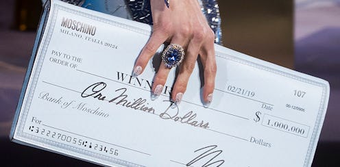 "Clear and bright jelly-tinted tips are a fun way to try faux fingernails," Miss Pop says, citing her Moschino Fall/Winter 2019 manicure (done with Essie polishes) as an example.