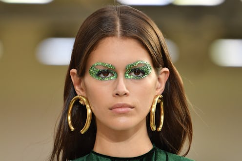 At Valentino, Pat McGrath's artists applied dozens of Swarovski crystals along Kaia Gerber's lids and brows — by hand. Consider me green with envy. McGrath didn't disclose the shade name or product she used on the lids (which might mean that something is coming!), but Blitz Emerald in the Mothership II: Sublime Palette will do just fine.