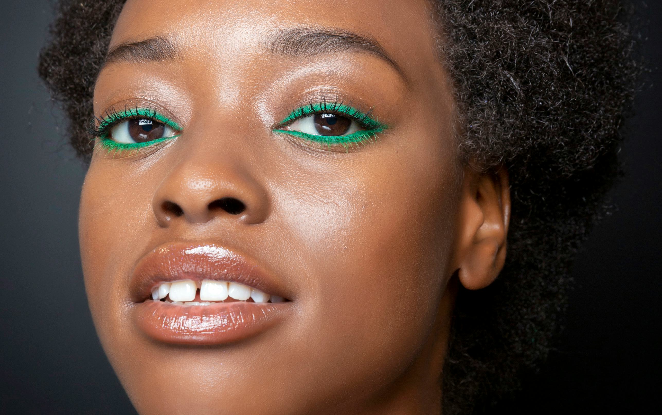 "Neon is definitely having a moment — I see it being used more minimally, though," Jaikaran says. If you're new to bold eyeliner or want to brush up on your wing technique, Jaikaran recommends breaking up the line into three parts. "Trying to do it in one go can be stressful," she says. Start with the inner third of your lash line, but instead of continuing on, stop and make sure that you have coverage and an even line. Then continue doing the next two parts of your eye, stopping and connecting as you go.