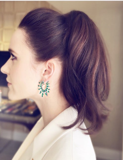 "Rachel wore a custom cream suit, tailored perfectly to her," celebrity hairstylist Mara Rozak tells TZR of Rachel Brosnahan’s Critics' Choice style. "With the gorgeous, strong silhouette, I decided on a voluminous glamorous ponytail, a nod to retro '60s, to compliment the look.” For all of that glorious volume, she relied on Suave Professionals Firm Control Boosting Mousse, applying it to Broshnahan's hair while damp.
