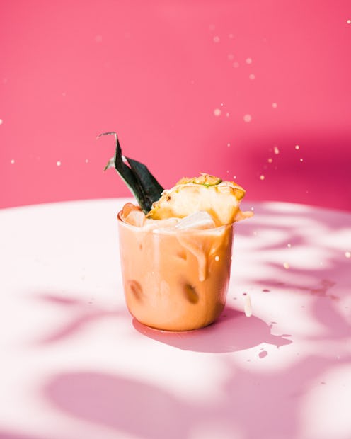 Another fan favorite recipe at Dayglow is its Life Aquatic. This coffee cocktail requires 2 oz. of espresso or concentrate, Ifergan says an AeroPress is a inexpensive way to achieve this, 3 oz. of Califia Farms Coconut Better Half, 1/2 oz. passionfruit syrup (Dayglow likes using Som Cordial shrub vinegars), three to four dashes of Bittermens Tiki Bitters, and garnish with citrus and pineapple. The founder's pro tip is to smoke the pineapple with applewood using a Breville Smoking Gun for amazing aromatics.