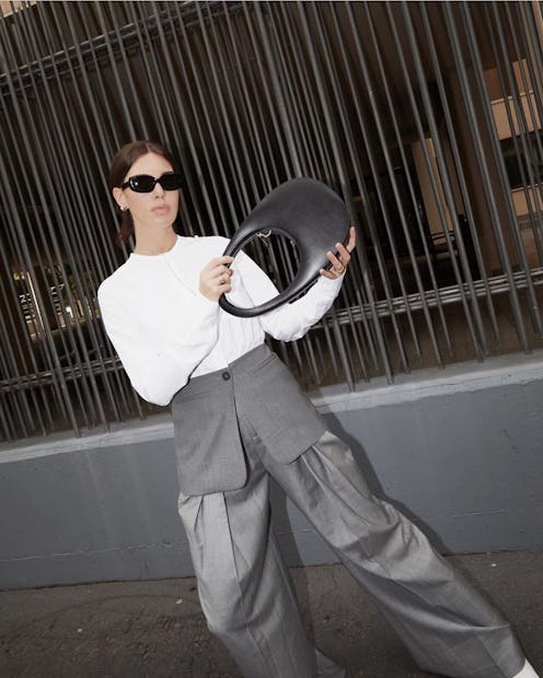 Coperni is an up-and-coming designer relaunched just last year with its architectural bags, and have already grabbed the attention of the fashion scene. The Parisian label has a few shapes to choose from, but arguably the most popular is its Swipe Bag (fans include Alyssa Coscarelli and Leia Sfez). The curved top handle and round cut make the handbag playful, yet luxe.